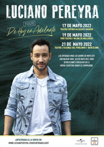 LUCIANO PEREYRA DE HOY EN ADELANTE MAYO 2022 17/05 Madrid (Teatro Cofidis Alcázar) 19/05 Palma de Mallorca (Trui Teatre) 21/05 Barcelona (Teatre L’Alianca Del Poblenou)